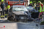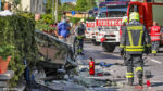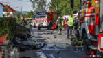 Eines der Unfallfahrzeuge hat sich nach der Kollision überschlagen, kam am Dach liegend in einer Hauseinfahrt zu liegen und begann zu brennen. Ersthelfer löschten mit einem Pulverfeuerlöscher den entstehenden Brand und konnten die beteiligten Personen aus den Unfallfahrzeugen befreien. Beim Eintreffen der Feuerwehr waren bereits alle Beteiligten aus den Fahrzeugen befreit. Die Verletzten wurden vom Rettungsdienst, dem Notarztteam sowie dem Team des Notarzthubschraubers Christophorus 10 erstversorgt und anschließend mit Verletzungen unbestimmten Grades, sowie schweren Verletzungen ins Krankenhaus eingeliefert.