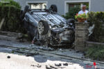 Oö: Pkw überschlägt sich nach Kollision teilweise in Hausgarten