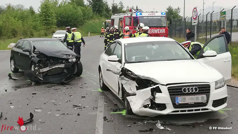 Oö: Bergungsarbeiten nach Pkw-Kreuzungsunfall in Ohlsdorf