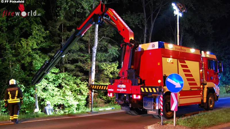 Dabei touchierte er mehrere Bäume und Sträucher. Verletzt wurde bei dem Crash glücklicherweise niemand. Die Stadtfeuerwehr Pinkafeld sicherte gemeinsam mit der Exekutive die Unfallstelle ab, stellte den Brandschutz sicher und führte mittels Kran (SRF) die Fahrzeugbergung durch.