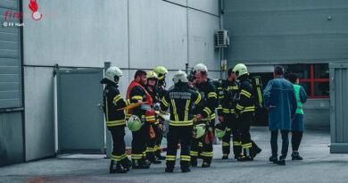 unterstützen die Rettungskräfte bei den notfallmedizinischen Erstmaßnahmen. Der verletzte Traktorfahrer konnte dann auf ein Spineboard gelagert und mit vereinten Kräften um das Gebäude herum zum Notarztfahrzeug gebracht werden, wo zwei Notärzte, ein Notarztsanitäter und drei weitere Sanitäter die medizinische Betreuung fortsetzten.