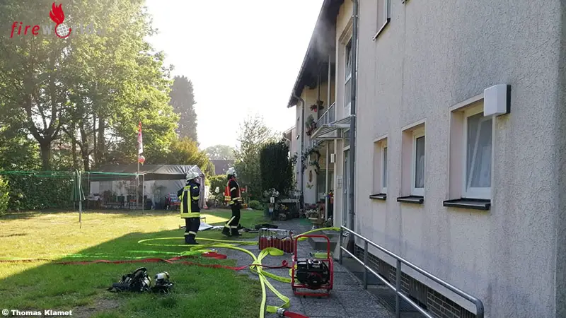 BOMLITZ (DEUTSCHLAND): Aus bisher ungeklärter Ursache kam es am Morgen des 27. Mai 2020 gegen 07:20 Uhr zu einem Feuer in einer Küche eines Mehrfamilienhauses in der Bomlitzer Hans-Böckler-Straße. Als die ehrenamtlichen Einsatzkräfte der Freiwilligen Feuerwehr Bomlitz wenig später eintrafen, hatten alle Bewohner das Gebäude bereits verlassen und dunkler Qualm drang aus der Brandwohnung.