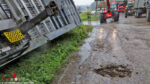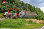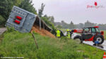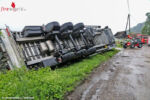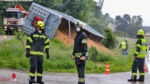 FELDKIRCHEN AN DER DONAU (OÖ): Die Stütze eines auf einem Parkplatz in Landshaag abgestellten Sattelanhängers war am 29. Mai 2020 vermutlich aufgrund des durch den Regen aufgeweichten Untergrundes eingebrochen und sorgte für das Umstürzen desselbigen.