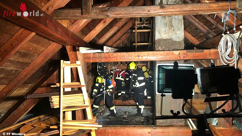 Am Einsatzort eingetroffen, wurde umgehend der Innenangriff mit je einem Atemschutztrupp der FF Desselbrunn und der FF Windern von zwei Seiten gestartet. Parallel dazu wurde eine Wasserversorgung und die Beleuchtung aufgebaut.