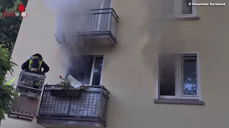 DORTMUND (DEUTSCHLAND): Mit schwersten Brandverletzungen fand die Feuerwehr am Sonntagmorgen, 31. Mai 2020, einen 60-jährigen Mann in einer brennenden Wohnung. Warum das Feuer in dem Mehrfamilienhaus ausgebrochen war, ist noch unklar und wird von der Polizei ermittelt.