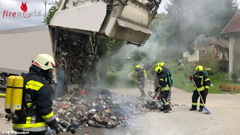 GÖLLERSDORF (NÖ): Am Dienstag, den 9. Juni 2020, wurden die Feuerwehren der Ortschaften Obergrub, Untergrub, Bergau und Göllersdorf um 13:16 Uhr per Sirenenalarm zu einem Müllwagenbrand in Obergrub alarmiert. Unverzüglich rückten insgesamt 5 Fahrzeuge mit 33 Mitgliedern aus.