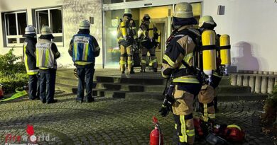 Als die Brandschützer die Einsatzstelle schon fast abgeschlossen haben, entdeckt einer der Retter Flammen und Rauch aus dem Fenster eines angrenzenden Gebäudes von der Straße Königshalt aus. Aufgrund der Einsatzentwicklung werden weitere Kräfte von Berufs- und Freiwilliger Feuerwehr nachgefordert. Weitere im Verlauf eintreffende Trupps suchen alle Gebäudeteile nach Personen ab, treffen aber glücklicherweise niemanden an.