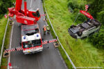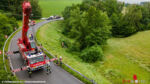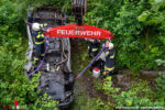 Oö: Pkw-Lenker stürzte über 20 Meter hohe Böschung → schwerer Fw-Kran im Einsatz