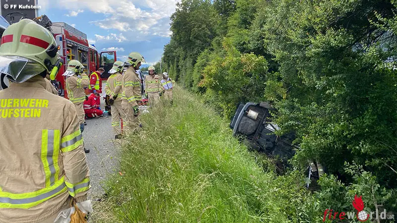 Bereits auf Anfahrt konnte vom eingetroffenen Rettungsdienst Entwarnung gegeben werden. Im Fahrzeug war nur eine Person, welche sich bereits selbst aus dem Fahrzeug befreien konnte. Der Lenker geriet zuvor über den Fahrbahnrand hinaus, fuhr der Böschung entlang und stürzte dann in den Straßengraben. Ebenfalls alarmiert war der Rettungsdienst mit Notarzt und Notarzthubschrauber. Die FF Kufstein stellte den Brandschutz sicher und übernahm die Verkehrsabsicherung auf der Autobahn. Nach 45 Minuten konnte die Einsatzstelle wieder verlassen werden.