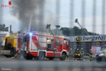 „Wir sind zu einem „Brand Gewerbe“ alarmiert worden, haben im Herfahren schon den Feuerschein gesehen, haben dann sofort einen Innenangriff gestartet mit zwei Trupps und haben das auch soweit in Griff und unter Kontrolle gebracht. Nachher hat sich leider herausgestellt, dass sich im Inneren oder in der Zwischendecke der Brand schon weiter ausgebreitet hat und schlussendlich hat er dann das Ersatzteillager erfasst, wo diverse Lacke, Reinigungsmittel und so Sachen gelagert waren. Diese haben dann durchgezunden und so ist es zu einem größeren Brandereignis gekommen. Wir haben dann sofort den Atemschutztrupp zurückgezogen und haben dann mittels Drehleitern einen Löschangriff gestartet. Die Löschwasserversorgung war relativ gut.