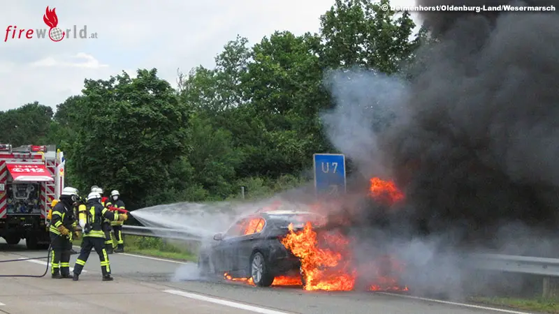 WARDENBURG (DEUTSCHLAND): Am 20. Juni 2020 um 12.24 Uhr kam es zum Brand eines Pkw im Ausfahrtbereich der AS Wardenburg, A29, Rtg. Wilhelmshaven (Gem. Wardenburg, Landkreis Oldenburg). Ein 30 jähriger aus Oldenburg befuhr die A29, als er plötzlich einen lauten Knall an seinem BMW wahrnahm.