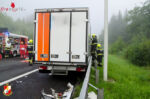 Freitagfrüh, 26. Juni 2020, prallte ein 60-Jähriger mit einem Klein-LKW gegen einen Sattelschlepper und erlitt tödliche Verletzungen.Gegen 07:30 Uhr fuhr ein 62-jähriger Pole mit einem Sattelkraftfahrzeug auf der A 2 in Richtung Klagenfurt. Bei Straßenkilometer 205,6, fuhr er aufgrund der dortigen Steigung nur mit circa 35 km/h auf dem ersten Fahrstreifen. Ein nachkommender Lenker eines Klein-LKW, 60 Jahre alt aus dem Bezirk Leibnitz, fuhr aus bisher ungeklärter Ursache auf den Sattelschlepper hinten auf. Durch die Wucht des Anpralles wurde der Klein-LKW total beschädigt und der Lenker im Wrack eingeklemmt. Erst durch die alarmierte Feuerwehr konnte der Mann aus dem Fahrzeug geborgen werden. Er hatte bei dem Unfall tödliche Verletzungen erlitten.Das Sattelkraftfahrzeug wurde beschädigt, der Lenker blieb unverletzt.Die A 2 war aufgrund des Verkehrsunfalles und der anschließenden Bergearbeiten in Fahrtrichtung Klagenfurt bis 13:00 Uhr gesperrt. Der Verkehr wurde über die Bundesstraße 70 umgeleitet.Die genaue Unfallursache ist noch Gegenstand der polizeilichen Ermittlungen, eine Obduktion des verstorbenen Lenkers wurde angeordnet. Die Angehörigen werden vom Kriseninterventionsteam betreut. Die Freiwilligen Feuerwehren Mooskirchen und Lieboch waren mit zahlreichen Einsatzkräften und insgesamt sechs Fahrzeugen im Einsatz und führten die Bergungsarbeiten durch.