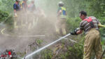 MENDEN (DEUTSCHLAND): In einem kleinen Waldstück zwischen der Hönne und der Fröndenberger Straße in Menden kam es am Samstagnachmittag, 27. Juni 2020, zu einem Bodenfeuer.