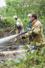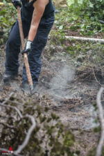 30 Einsatzkräfte der Feuerwehr Menden waren fast zwei Stunden damit beschäftigt den Brand zu bekämpfen. Auf ca. 100 qm hatte sich das Feuer in den Waldboden gefressen. Oberflächlich waren die Flammen schnell bekämpft, um auch die tiefergelegenen Glutnester erreichen zu können, musste der Waldboden teilweise umgegraben werden. Des Weiteren setzte die Feuerwehr Löschwasser mit Netzmittel ein, dieses bewirkt eine geringere Oberflächenspannung des Wassers dadurch kann es besser ins Brandgut eindringen.