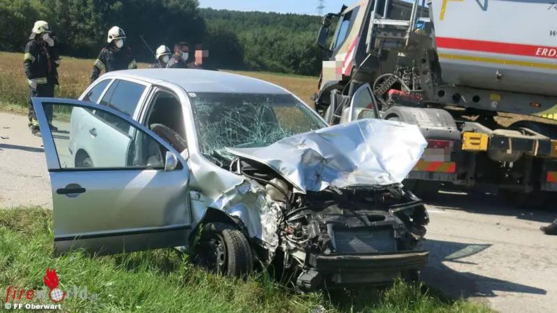 OBERWART (BGLD): Am Mittwoch dem 1. Juli 2020, wurde die Feuerwehr Oberwart zu einem Verkehrsunfall mit eingeklemmter Person, Lkw gegen Pkw, alarmiert. Im Kreuzungsbereich Messelände / Feldgasse in Oberwart kam es zu einem Verkehrsunfall zwischen einen Pkw und einen Sattelaufleger. Dabei wurde eine Person verletzt.