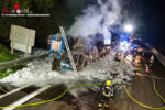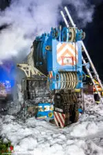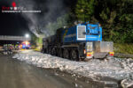 HAAG (NÖ): Gegen 0:30 Uhr geriet am 6. Juli 2020 auf der Westautobahn A1, Fahrtrichtung Wien zwischen St. Valentin und Haag ein 400 Tonnen Autokran in Brand.