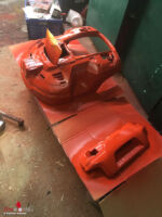 Papa Christian ließ diesen Gedanken natürlich nicht untätig verstreichen. So nahm er seinen Automower 315 von Husquarna mit 22 cm Schnittbreite und strengte die Hirnzellen an. „Ich habe den Roboter zerlegt und das Gehäuse in RAL-3000 (feuerwehrrot) lackiert.