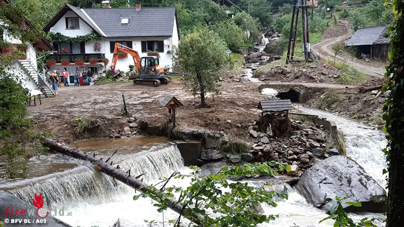 SCHWANBERG (STMK): Da die Aufräumarbeiten vom Unwetter des 24. Juli 2020 gegen Mitternacht für die Nachtstunden unterbrochen worden sind, wurden die Feuerwehren Grünberg- Aichegg, Gressenberg, Garanas, Schwanberg und Hollenegg am 25. Juli 2020 gegen 8 Uhr abermals alarmiert, um die Arbeiten wieder fortzusetzen.
