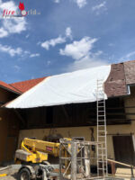 Die größte Herausforderung an diesem Tag, war jedoch ein Gewerbebetrieb in der Attnanger Straße. Dort hat der Hagel ca. 6500 m2 Dachfläche der Produktionshalle durchlöchert. 4000 m2 müssen mit Planen abgedeckt werden und weitere 2500 m2 werden noch mit Pistolenschaum ausgebessert. Zur Unterstützung wurde die Feuerwehr Frankenmarkt mit der Teleskopmastbühne, sowie die Höhenrettergruppe alarmiert. Die Arbeiten wurden am Mittwoch um 19:30 Uhr vorerst gestoppt. Im Einsatz waren die FF Frankenmarkt mit 7 Mann und zwei Fahrzeugen, die FF Ottnang mit 9 Mann und 3 Fahrzeugen sowie, 5 Mitarbeiter der beteiligten Firma.