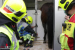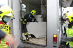 Das Pferd „Laurus-C“ hatte sich in einem Pferdetransportanhänger mit den hinteren Beinen so unglücklich bei einer Trenntüre eingeklemmt, sodass es dem Tier nicht möglich war, sich mit eigenen Kräften zu befreien. Versuche des Besitzers, das Pferd zu befreien, blieben erfolglos. Um das Tier rasch und schonend zu befreien, wurden die Türbolzen der Trenntüre vorsichtig aus den Scharnieren geschlagen. Nachdem die Bolzen entfernt waren, konnte die Tür demontiert und das Pferd ohne Verletzungen befreit werden. Nach knapp 30 Minuten rückten sämtliche Kräfte wieder ins Feuerwehrhaus ein.