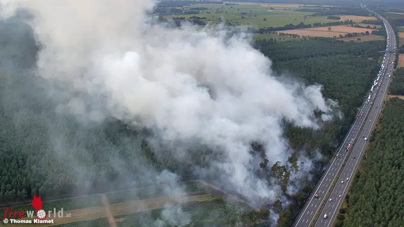 D: Rund 28 Hektar Wald an der A7 in Flammen → Wochenendhausgebiet evakuiert