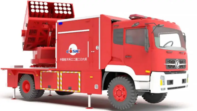 China hat bereits vor 2 Jahren ein Feuerlöschsystem vorgestellt, das auf dem Konzept eines Mehrfachraketenwerfers basiert und zur Bekämpfung von Bränden in Hochhäusern entwickelt wurde: ein Hochhaus-Raketenlöschsystem.