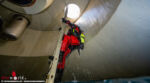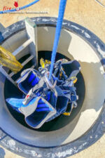 Nachdem einer der drei Faultürme der LINZ AG-Regionalkläranlage Linz-Asten einer Generalsanierung unterzogen worden war, konnten die Taucher zum Abschluss der Arbeiten im mit Wasser befüllten Turm abtauchen. Der Einsatzort war wahrlich ungewöhnlich. Dort wo üblicherweise 10.000 Kubikmeter Faulschlamm bei einer Temperatur von 37°C „anaerob stabilisiert“ werden, wie es in der Fachsprache heißt, stiegen die Feuerwehrtaucher in der Höhe von 44 in den Turm ein, um abzutauchen.