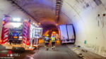 MOOSKIRCHEN (STMK): Um 05:45 Uhr des 17. September 2020 wurden die Feuerwehren Mooskirchen und Steinberg zu einem Verkehrsunfall mit einer möglichen eingeklemmten Person auf die A2 Südautobahn alarmiert. Aus bisher noch ungeklärter Ursache kam ein Lkw-Lenker, der mit seinem mit Holzbriketts vollbeladenen Sattelschlepper in Fahrtrichtung Klagenfurt unterwegs war – rechts von der Fahrbahn ab und krachte gegen den Aufpralldämpfer des Portals des Assingbergtunnels. Der Sattelzug kam ca. 50 Meter im Tunnel an der rechten Wand zum Stehen.