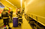 Der Lenker hatte großes Glück, er konnte sich unverletzt selbst befreien. Am Sattelzug und an der Infrastruktur des Tunnels entstand jedoch erheblicher Schaden. Die Einsatzkräfte der alarmierten Feuerwehren sicherten gemeinsam mit der Asfinag die Einsatzstelle im Tunnel großräumig ab, bauten einen Brandschutz auf und reinigten die Fahrbahn von auslaufenden Betriebsflüssigkeiten. Aufgrund dessen, dass der rechte für die Einsatzkräfte unzugängliche Tank beschädigt war, wurden von der Feuerwehr Dieselkraftstoff abgepumpt, um ein weiteres unkontrolliertes Austreten zu verhindern.