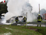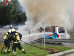 Beim Eintreffen an der Einsatzstelle (park&ride) stand ein Kleintransporter im Vollbrand. Verletzt wurde glücklicherweise niemand. Sofort wurde ein Atemschutztrupp mittels HD- Rohr zur Brandbekämpfung vorgeschickt. Vom Fahrzeuglenker wurde der Einsatzleiter darüber in Kenntnis gesetzt, das sich im Laderaum Benzinkanister für ein eingebautes Aggregat befinden. Während die Löscharbeiten mit dem HD- Rohr im vollen Gange waren, wurde ein Mittelschaumrohr vorbereitet.