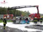 Das HD- Rohr wurde zurückgenommen und der Löschangriff auf Schaum umgestellt. Schnell zeigte die Maßnahme Wirkung und es konnte „BRAND AUS“ gegeben werden. Mittels Wärmebildkamera wurden Glutnester lokalisiert und gezielt abgelöscht. Die Heckklappe musste mit einem hydraulischen Rettungsspreitzer gewaltsam geöffnet werden. Im Anschluss an die Löscharbeiten führte die FF Pinkafeld mittels SRF die Fahrzeugbergung durch.