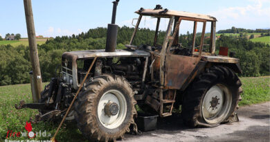 Hierbei wurde der Pickup mit herumgezogen und ausgehoben. Glücklicherweise gab es keine Verletzten. Der Totalschaden am Anhänger beläuft sich ca. 18.000 Euro