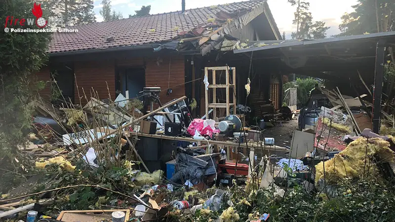 D: Propangasexplosion zerstört Schuppen und Wohnhaus → ein Schwerverletzter