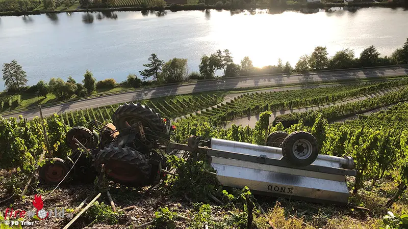 D: Traktor samt Leseanhänger nach Seilwinden-Fehlbedienung am Weinberg abgestürzt