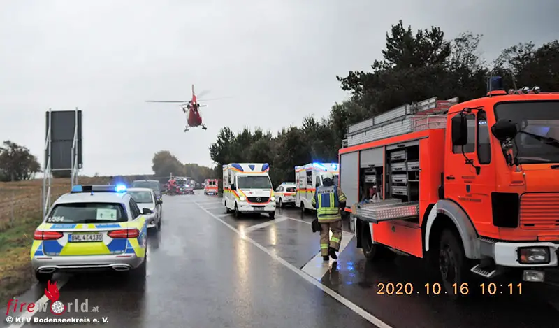UHLDINGEN-MÜHLHOFEN (DEUTSCHLAND): Auf der Bundesstraße 31, zwischen Uhldingen-Mühlhofen und Meersburg, kam es am Freitagmorgen, 16. Oktober 2020, kurz vor 9 Uhr in Fahrtrichtung Friedrichshafen nach dem Parkplatz Wölfle zu einem schweren Verkehrsunfall zwischen einem Pkw Audi und einem Lkw. Nach ersten Polizeiermittlungen kam der Pkw ins Schleudern und kollidierte frontal mit dem entgegenkommenden Lkw.