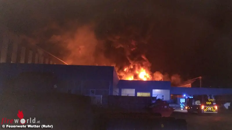 D: 2.000 m² Halle brennt in Wetter / Ruhr → Über 17 Stunden im Einsatz