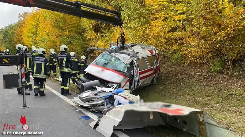 Mehrfach-Überschlag eines Rettungsfahrzeuges