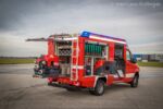 Die neue Heckklappe ist innen ebenfalls mit neuen LED-Bändern ausgestattet, um den Arbeitsbereich des Maschinisten blend- und schattenfrei auszuleuchten. Auch in den Geräteräumen sind auf drei Seiten neue, leuchtstarke LED-Streifen montiert und bringen Licht in jeden Winkel. Im Mannschaftsraum sorgen eine Ambientbeleuchtung am Himmel, indirekt beleuchtete Griffstangen und eine optionale Bodenbeleuchtung an den Sitzbänken für eine homogene Ausleuchtung. Im Außenbereich des AT kann die Bodenkontur beleuchtet werden, um die Sicherheit beim Ein- und Aussteigen sowie beim Arbeiten rund um das Fahrzeug zu erhöhen.