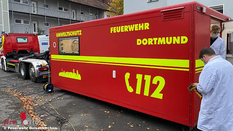 Nach einer erste Erkundung der Wohnung war schnell klar, dass man hier auf die Unterstützung von Spezialkräften zurückgreifen musste. Es bestand der begründete Verdacht, das sich in mindestens zwei der Fläschchen getrocknete Pikrinsäure befand. Sie ist in diesem auskristallisierten Zustand hochexplosiv. Mit Manpower und spezieller Ausrüstung rückten Kräfte der Bundespolizei und der Analytischen Taskforce der Feuerwehr Dortmund an.