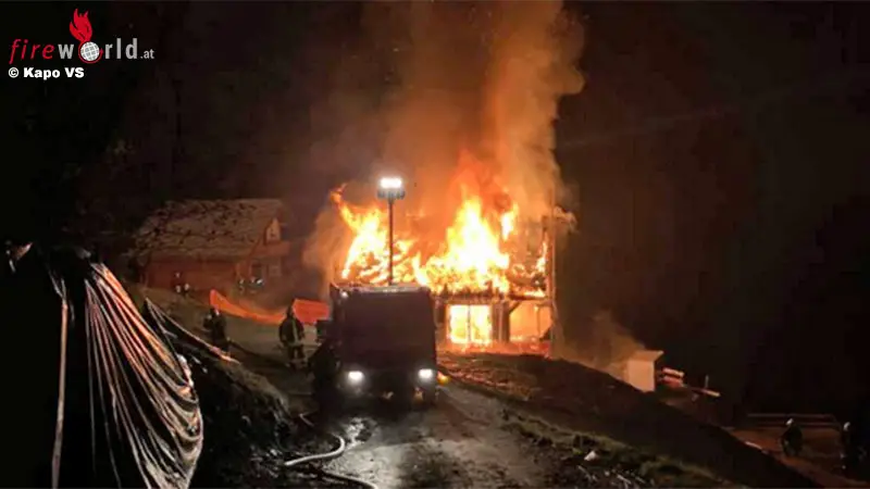 VEX (SCHWEIZ): Am Abend des 4. November 2020 brach in einem sich im Bau befindliches Chalet in Vex, am Orte genannt «Les Masses» ein Brand aus. Das Chalet wurde durch das Feuer total zerstört.
