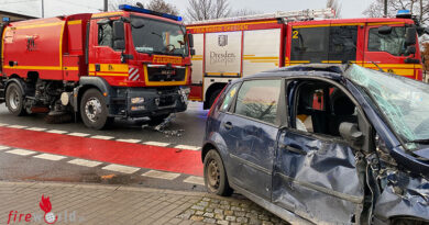 Wenige Stunden später ereignete sich ein Verkehrsunfall auf der Währinger Straße, in dem ein Pkw und eine Straßenbahn involviert waren. Der Pkw kam als Folge des Zusammenstoßes auf dem Gehsteig zum Stillstand. Der Fahrzeuglenker war aufgrund der Verformung des Fahrzeuges im Fahrgastraum eingeschlossen. Mittels hydraulischem Rettungsgerät entfernten die Feuerwehrkräfte die beiden Türen auf der Beifahrerseite des Fahrzeuges.