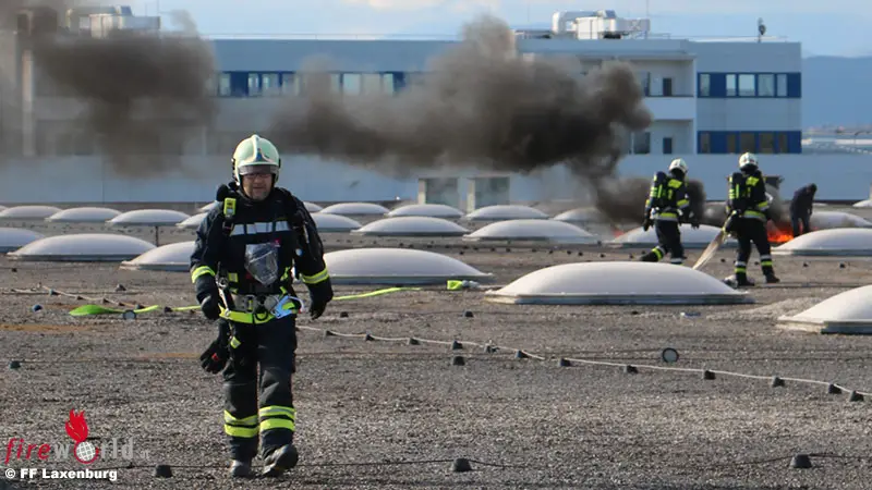 LAXENBURG (NÖ): Am ersten Tag des neuen Lockdowns, 17. November 2020, mussten 83 Mitglieder von fünf Feuerwehren aus dem Bezirk Mödling und die Berufsfeuerwehr Wien einen Brand auf dem Dach einer Lagerhalle im Industriezentrum NÖ-Süd im Gemeindegebiet von Laxenburg bekämpfen.