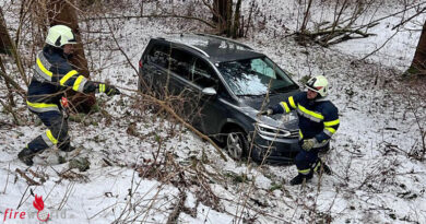 Beim Eintreffen am Einsatzort bot sich den Einsatzkräften folgende Lage: Ein Pkw war beim Einfahren auf die B76 ins Schleudern geraten, kam dabei über die Leitschiene und blieb am parallel verlaufenden Gehweg zum Stehen. Dabei wurde die Lärmschutzwand aus der Verankerung gerissen und stürzte über den angrenzenden Hang. Die Lenkerin wurde dabei unbekannten Grades verletzt und von dem anwesenden Roten Kreuz erstversorgt und ins Krankenhaus überstellt.