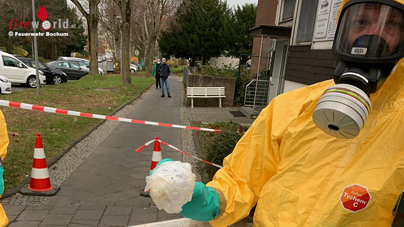 BOCHUM (DEUTSCHLAND): Gegen 14:30 Uhr wurde die Leitstelle der Feuerwehr Bochum am 26. November 2020 über Notruf informiert, dass sich in einem Behindertenwohnheim an der Wittenerstr ein Behältnis mit etwa 100 ml einer giftigen Substanz befinden soll.