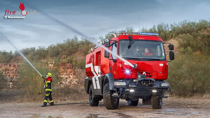 Rosenbauer präsentiert ein neues Tanklöschfahrzeug zur Waldbrandbekämpfung. Es erfüllt sowohl die Kategorie 3 der EN 1846-2 für geländegängige Löschfahrzeuge als auch spezifische Anforderungen zum Schutz der Fahrzeugbesatzung, wie sie zum Beispiel in der französischen Norm NFS 61-517 bzw. NFS 61-518 definiert sind.