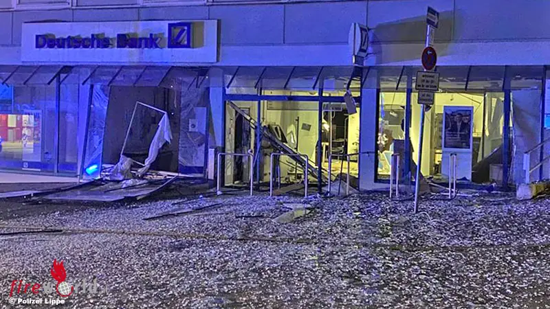 LIPPE (DEUTSCHLAND): Gegen 03.30 Uhr des 11. Dezember 2020 sprengten Unbekannte einen Geldautomaten in einer Filiale der Deutschen Bank in der Straße „Am Herforder Tor“ in Lippe. Den Tätern gelang es nicht den Geldautomaten durch die Sprengung zu öffnen, so dass sie ohne Beute flüchteten.