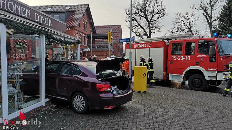 CELLE (DEUTSCHLAND): Am Nachmittag des 14. Dezember 2020 rutschte ein 80 Jahre alter Autofahrer von der Bremse seines Wagens und fuhr direkt in das Schaufenster des Postgebäudes in der Wiesenstraße in Celle.