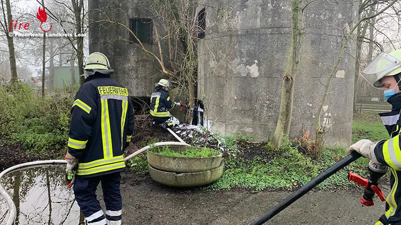 NEERMOOR (DEUTSCHLAND): Am Mittwochvormittag, dem 16. Dezember 2020, wurde die Feuerwehr Neermoor in den Voßbargweg gerufen. Auf dem Gelände eines ehemaligen landwirtschaftlichen Betriebes hatten Passanten ein Feuer in einem alten Betonsilo bemerkt.