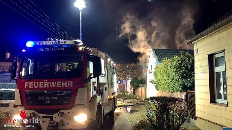 BRUCK AN DER LEITHA (NÖ): Am Samstag, dem 9. Jänner 2021, erfolgte um 21:28 Uhr die Sirenenalarmierung der Feuerwehren Bruck an der Leitha und Wilfleinsdorf zu einer brennenden Garage in Bruck an der Leitha. Aus noch ungeklärter Ursache kam es zu einem Brand einer Garage in einem Wohngebiet.