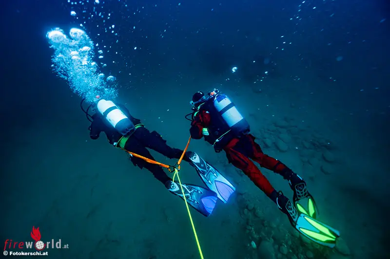 Mit der Verwendung eines Sicherungsseils sind die Taucher während des gesamtem Tauchgang untereinander aber auch zu einer Sicherungsperson und zur Aus- bzw. Einstiegsstelle verbunden.